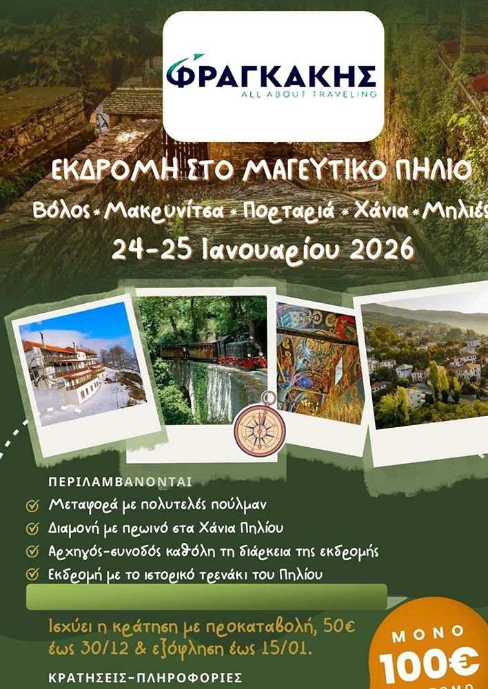- Εκδρομή με το ιστορικό τρενάκι του Πηλίου