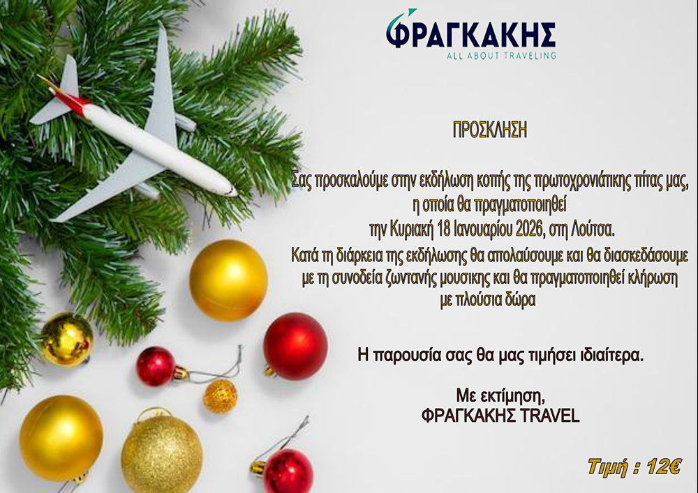 Σας προσκαλούμε στην εκδήλωση κοπής της πρωτοχρονιάτικης πίτας μας, η οποία θα πραγματοποιηθεί